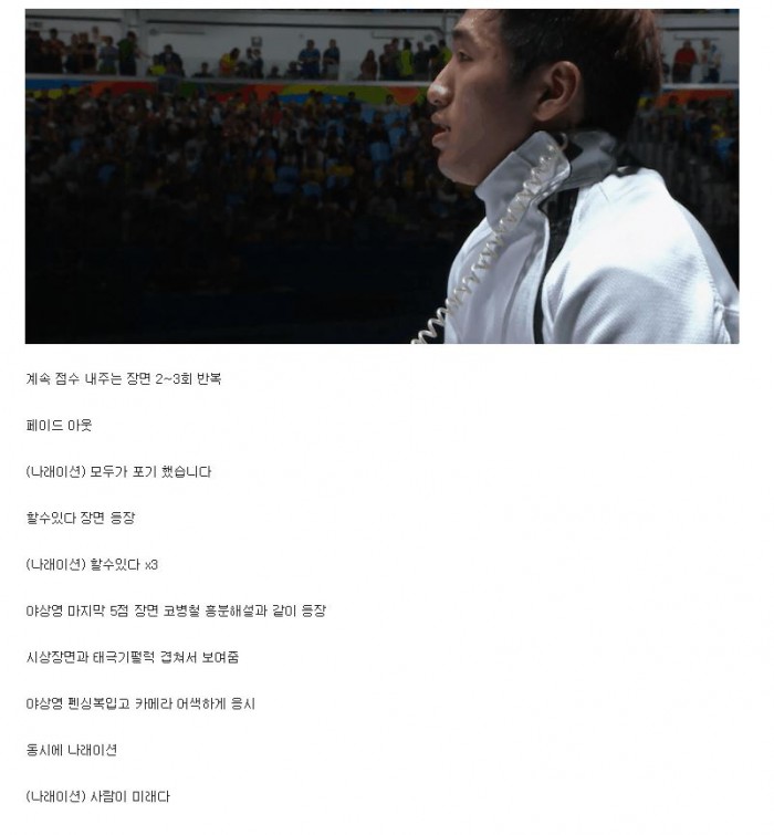 이 교수는 "박 선수의 '할 수 있다'라는 메시지에는 공익적 메시지가 담겨있다. 아마도 기업PR광고모델로서 박상영 선수가 뽑힐 수 있다. 기업쪽에서도 올림픽 영웅을 모델로 섭외하면 좋은 마케팅 효과를 거둘 수 있을 것이다"고 전망했다.(리우데자네이루/브라질=게티/포커스뉴스) 박상영이 10일(한국시간) 브라질 리우 데 자네이루 카리오카 아레나3에서 열린 남자 펜싱 에페 개인전 결승에서 제자 임레(헝가리)를 꺾은 후 환호하고 있다. 2016.08.10 ⓒ게티이미지/이매진스 네티즌 유저 '올_르건***'가 커뮤니티에 올린 가상 광고 시나리오. <사진출처=온라인커뮤니티 'ALLMA'(리우데자네이루/브라질=게티/포커스뉴스) 남자 펜싱 박상영이 10일(한국시간) 브라질 리우 데 자네이루 올림픽파크 카리오카 아레나3에서 열린 2016 리우올림픽 남자 펜싱 에페 개인전 결승에서 세계랭킹 3위 제자 임레(헝가리)를 꺾었다. 금메달을 목에 건 박상영이 두 손을 번쩍 들고 기뻐하고 있다. 2016.08.10 ⓒ게티이미지/이매진스 (리우/브라질=게티/포커스뉴스) 박상영이 10일 오전(현지시간) 브라질 리우 데 자네이루 카리오카 아레나3에서 열린 남자 펜싱 에페 개인전에서 우승한 후 태극기를 들고 환호하고 있다. ⓒ게티이미지/이매진스 2016.08.10 차상엽 기자