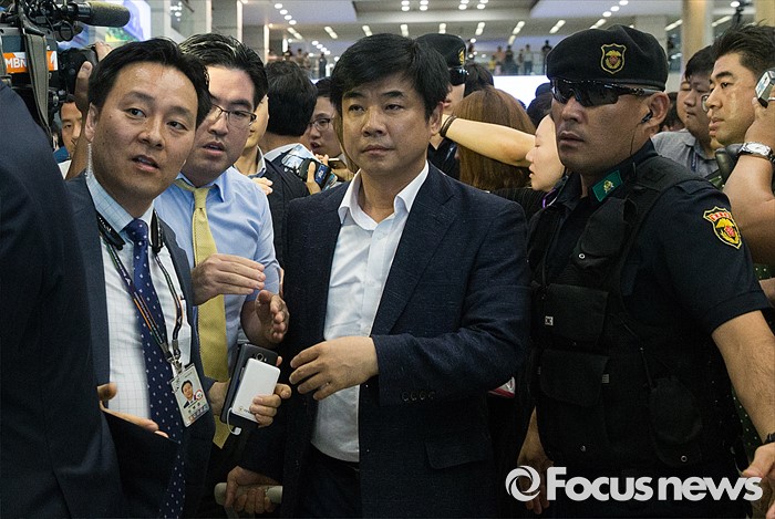 (인천공항=포커스뉴스) 사드배치에 반발하는 중국 측 입장을 듣기 위해 중국을 방문한 김병욱(가운데) 더불어민주당 의원이 10일 오후 인천국제공항을 통해 귀국하고 있다.