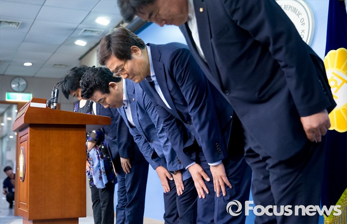 (서울=포커스뉴스) 방중을 마치고 귀국한 더불어민주당 초선 의원들이 10일 오후 서울 여의도 국회 정론관에서 기자회견 중 인사하고 있다.