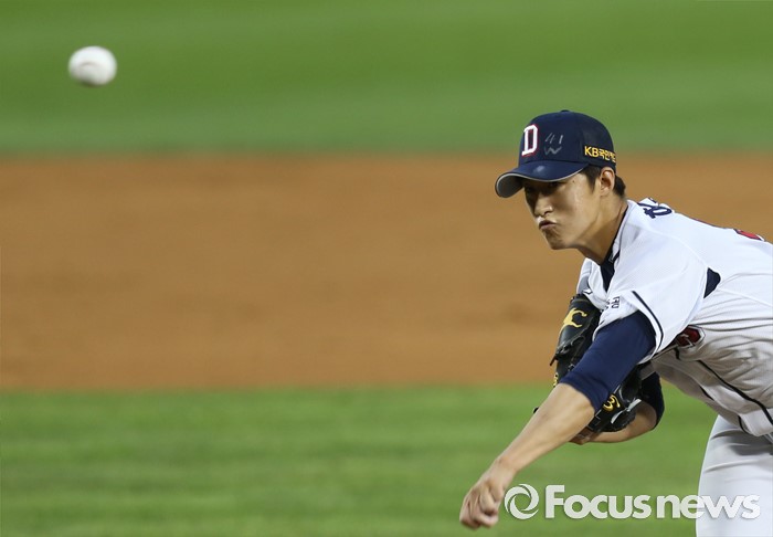 (서울=포커스뉴스) 10일 서울 잠실구장에서 열린 2016 프로야구 KIA-두산 경기 3회초 1사 1,3루에서 두산 투수 허준혁이 구원 등판해 투구하고 있다.