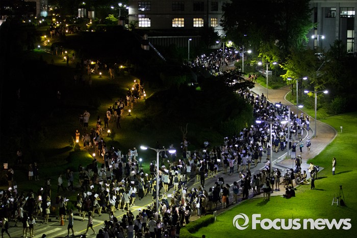 학내 행진하는 이화여대생들