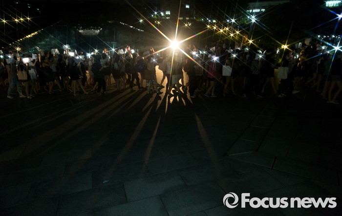(서울=포커스뉴스) 10일 오후 서울 서대문구 이화여대에서 재학생 및 졸업생들이 최경희 총장의 사퇴를 요구하며 행진을 하고 있다.