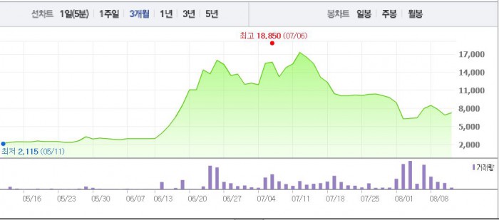 아이카이스트랩은 3일부터 8일까지 4거래일 연속 상승세를 나타냈다. 특히 5일에는 무려 24.26% 상승폭을 기록하기도 했다.