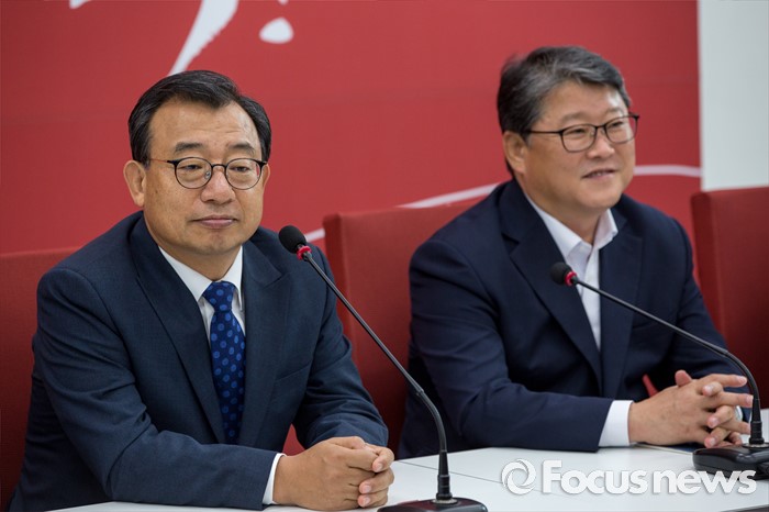 (서울=포커스뉴스) 이정현(왼쪽) 새누리당 대표가 11일 오전 서울 여의도 국회에서 열린 최고위원회의에 참석 하고 있다. 이날 회의에서 대표와 원내대표를 비롯한 최고위원들의 모두발언 공개 없이 잠깐의 촬영시간만 주어진 뒤 비공개로 전환 했다.