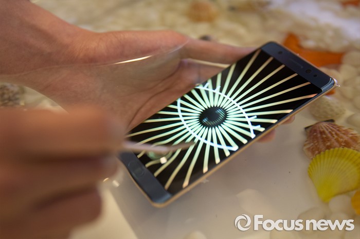 (서울=포커스뉴스) 11일 오전 서울 서초구 삼성전자 사옥에서 열린 '갤럭시 노트7 출시 미디어 행사'에서 관계자들이 제품을 소개하고 있다.
