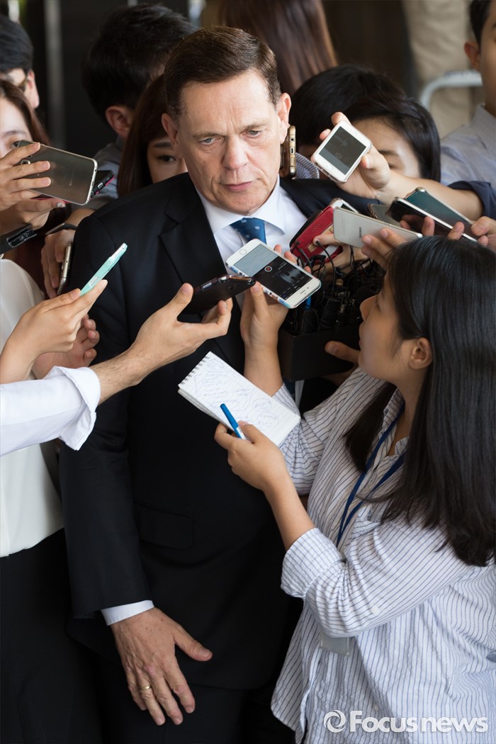 | △ 취재진 질문받는 요하네스 타머 |