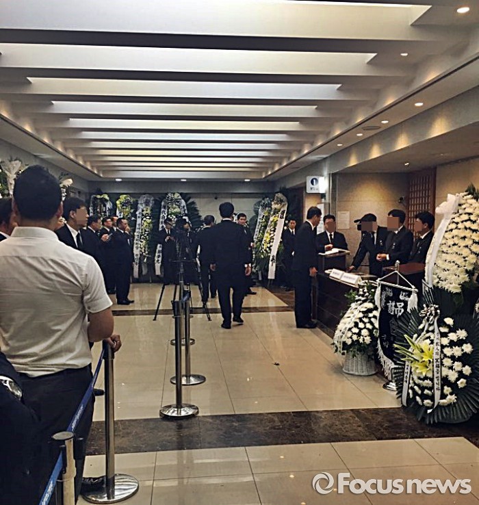 고 강태영 여사는 향년 90세의 나이로 별세했다. 한화그룹 창업주인 김종희 회장의 부인으로 슬하에 김승연 회장과 김호연 회장, 김영혜 전 제일화재 이사회 의장을 뒀다.11일 오후 서울 종로구 혜화동 서울대병원 장례식장에 차려진 고 강태영 여사의 빈소를 찾은 조문객들이 줄 서 있다.2016.08.11 이서우 기자 buzacat@focus.co.kr