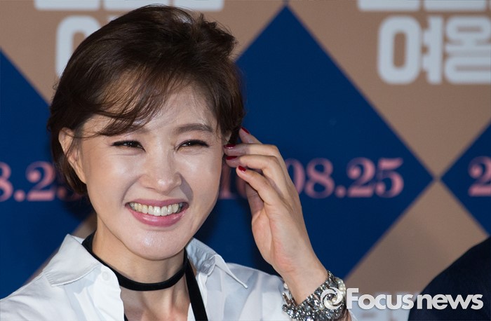 (서울=포커스뉴스) 11일 오후 서울 성동구 CGV 왕십리에서 열린 영화 '범죄의 여왕' 언론시사회에 참석한 배우 박지영이 미소 지으며 머리를 넘기고 있다.