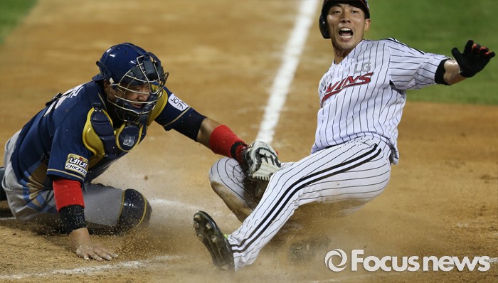 | △ 홈슬라이딩하는 LG 김용의 |